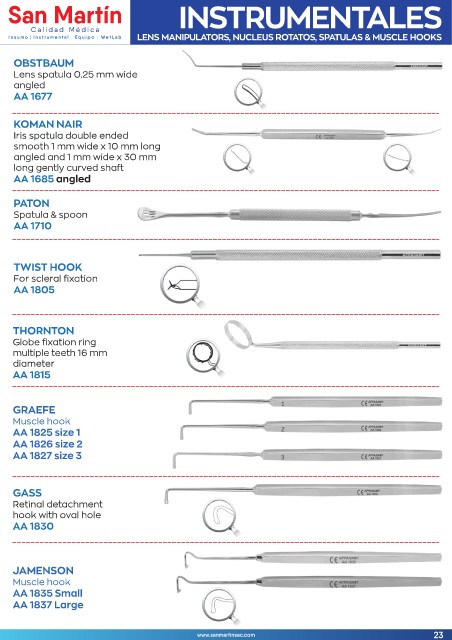 I n s u m o I n s t r u m e n t a l E q u i p o W e t L a b LENS MANIPULATORS, NUCLEUS ROTATOS, SPATULAS & MUSCLE HOOKS