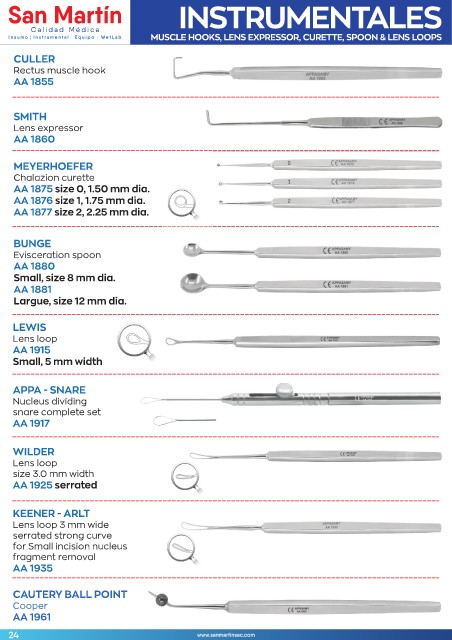 I n s u m o I n s t r u m e n t a l E q u i p o W e t L a b MUSCLE HOOKS, LENS EXPRESSOR, CURETTE, SPOON & LENS LOOPS