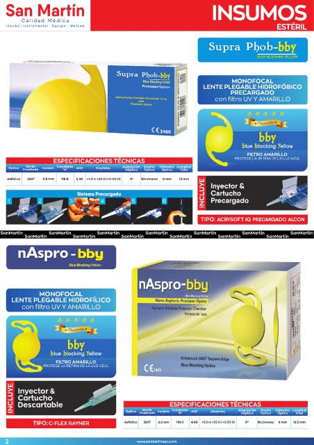 Asférica 360° 2.8 mm 118.8 5.46 +4.0 a +30.0 (+0.50 D) 0º Biconvexo 6 mm 13 mm Inyector &
